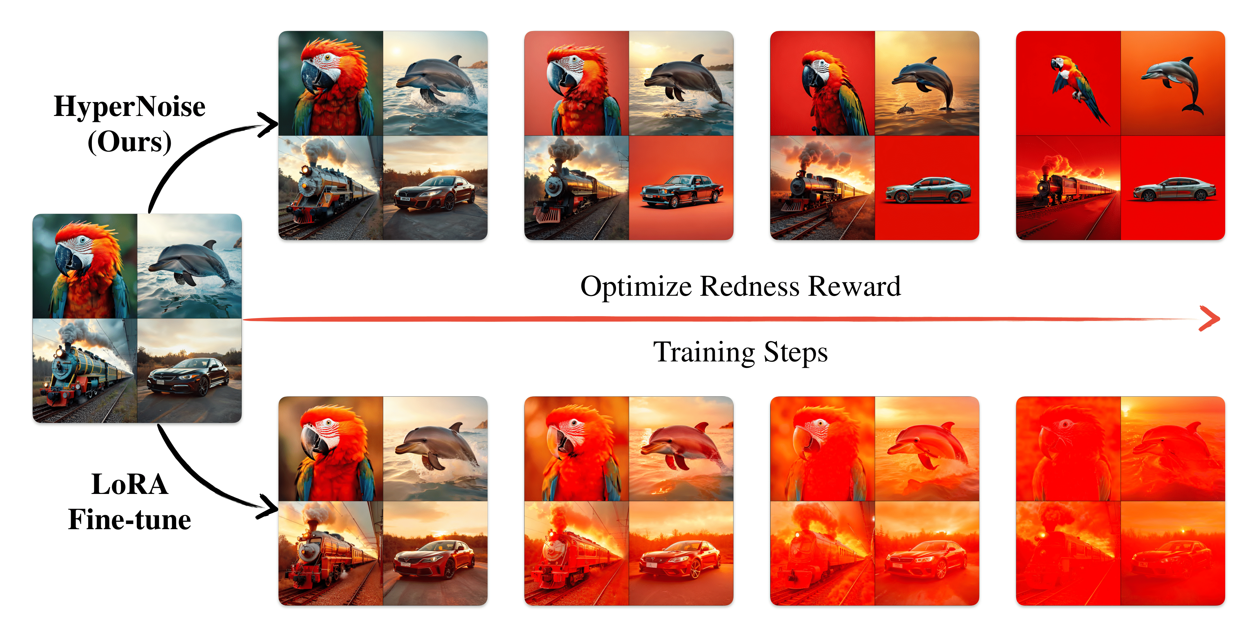 The new paradigm of test-time scaling has yielded remarkable breakthroughs in Large Language Models (LLMs) and in generative vision models, allowing models to allocate additional computation during inference to effectively tackle increasingly complex problems. Despite the improvements of this approach, an important limitation emerges: the substantial increase in computation time makes the process slow and impractical for many applications. Given the success of this paradigm and its growing usage, we seek to preserve its benefits while eschewing the inference overhead. In this work we propose one solution to the critical problem of integrating test-time scaling knowledge into a model during post-training. Specifically, we replace reward guided test-time noise optimization in diffusion models with a Noise Hypernetwork that modulates initial input noise. We propose a theoretically grounded framework for learning this reward-tilted distribution for distilled generators, through a tractable noise-space objective that maintains fidelity to the base model while optimizing for desired characteristics. We show that our approach recovers a substantial portion of the quality gains from explicit test-time optimization at a fraction of the computational cost.